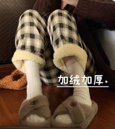 ズボンレディース大きいサイズ ふわもこ 裏起毛 スリムパンツ ファッション チェック 長いズボン ストレート スラックス ロングズボン ズボンレディース 美脚 四節適用着痩せ脚長効果