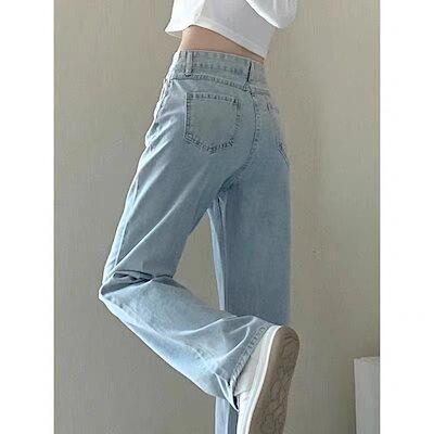 ハイウエストの淡い色のジーンズ女性春秋新型学生ゆったりスリムストレートワイドパンツデニムボトムス レディース