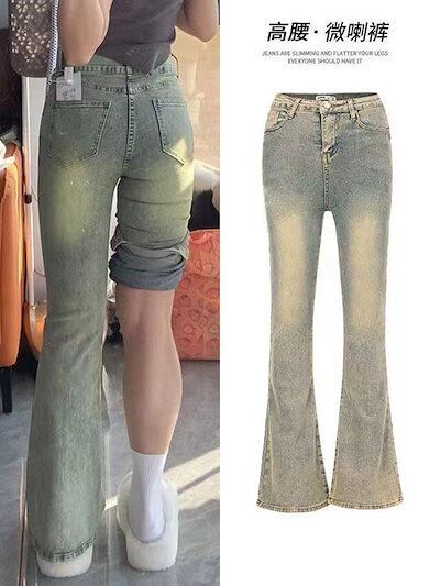 レトロレトロレトロなマイクロフレアジーンズ女性春秋の新型ビッグサイズ太mmハイウエストスリム梨型ボディパンツデニムボトムス レディース