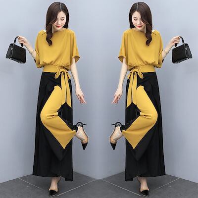 レディース シフォン ワイドレッグ パンツスーツ 2024年 夏 ワンピース 新気質 女神 ファン トレンド ドレープ感 洋風 スリム ツーピース セット