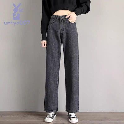 デニムパンツ レディース ボトムス 美脚 チノパン ハイウエスト ワイドパンツ パンツ 体型カバー 秋 ジーパン 20代 30代 40代 50代 カジュアル
