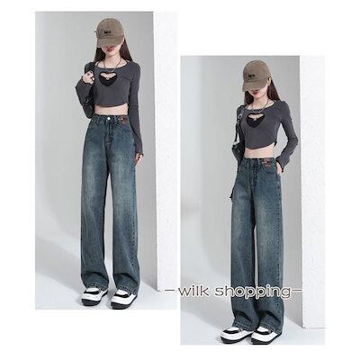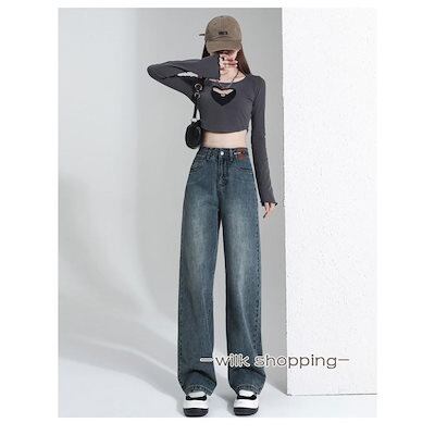 デニム レディース パンツ ジーンズ デニム ボトムス 美脚 チノパン ハイウエスト ワイドパンツ パンツ 体型カバー 春 夏 秋 ジーパン 20代 30代 40代 50代