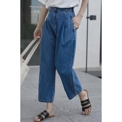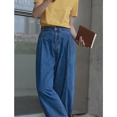 パンツ デニム ジーンズ 美シルエットハイウエストワイドデニムパンツ レディースボトムス チノパンツ 綿 イージーパンツ バックゴム 低身長 コクーンパンツ