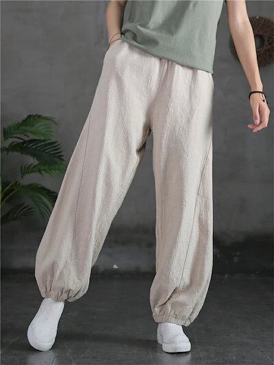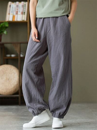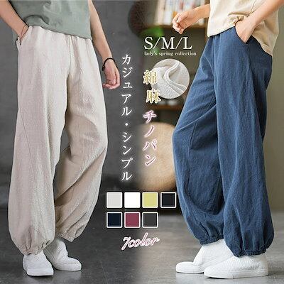 ワイドパンツ リネン コットン レディース 春 夏 綿 チノパン ワイドルーズ バギー イージーパンツ スウェットパンツ ジャージー ゆる ウエストゴム レディース ボトムス ゆったり 大きいサイズ