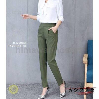(新品買い占め中)テーパードパンツ チノパン ボトムス パンツ レディース 3color ロングパンツ 九分丈 スラックス テーパード 美脚 ハイウエスト 着痩せ 無地