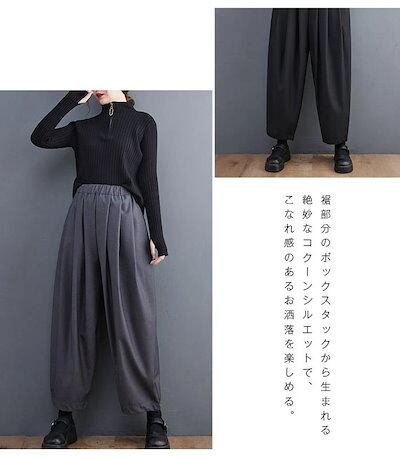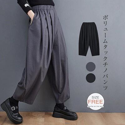 タックワイドパンツ レディース ボトムス 春 パンツ コクーンパンツ ワイドパンツ ウエストゴム 秋冬 ゆったり バギー チノパン 大きいサイズ ズボン カジュアル 通勤 仕事 オフィス 事務所 OL