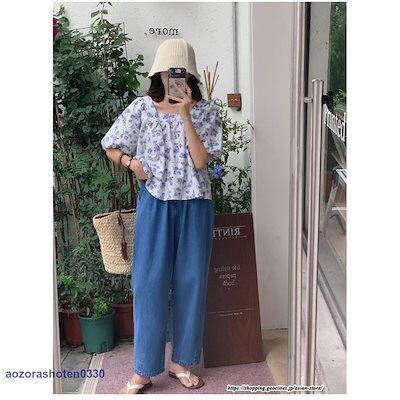【3月新品】パンツ デニム ジーンズ 美シルエットハイウエストワイドデニムパンツ レディースボトムス チノパンツ 綿 イージーパンツ バックゴム 低身長 コクーンパンツ