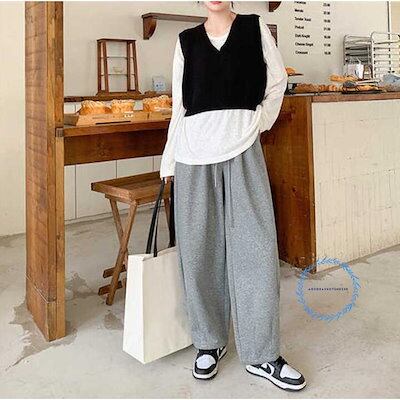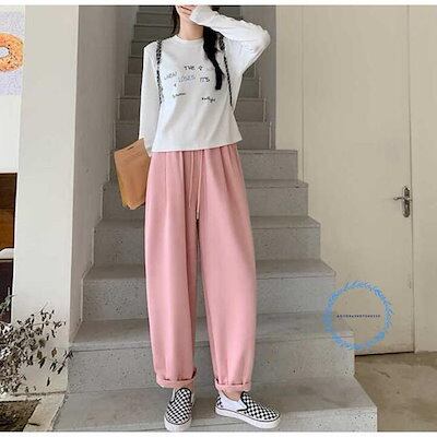 【3月新品】ロングパンツ チノパン レディース ゆったり ハイウエスト 着せ アンクル カジュアル ポケット付き 体型カバー 春 秋 ウエストゴム 紐 ロング 部屋着