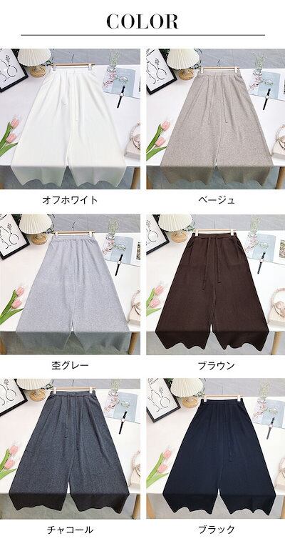 ワイドパンツ レディース パンツ ガウチョパンツ ガウチョ ワイド 無地 ウエストゴム ズボン フレアパンツ フレア ボトムス ロング きれいめ ストレッチ スカーチョ ニット ニットパンツ 体型カバ