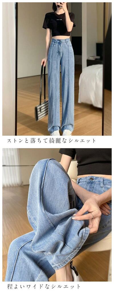 ワイドパンツ デニム 接触冷感 レディース パンツ 夏 春 冷感 ワイド ストレッチ ストレート ガチョウパンツ 吸汗 速乾 通気 UVカット 涼しい ハイウエスト ポケット ゆったり 無地 楽ちん