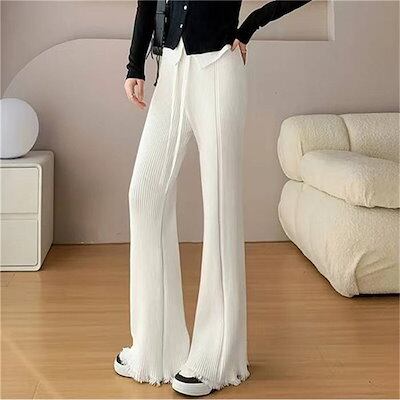 ベルボトム ニットパンツ レディース ニット ストレッチ パンツ フレアパンツ ベルボトムパンツ パンタロン リブニット タイト フリンジ レトロ モード おしゃれ きれいめ 美脚パンツ 美脚ライン