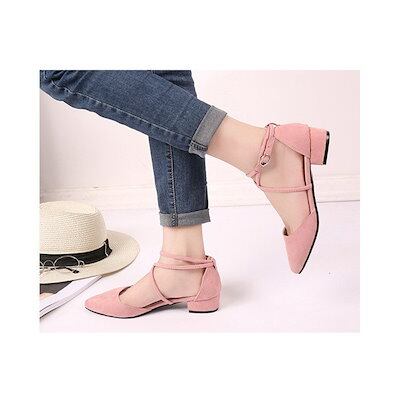パンプス ローヒール サンダル 美脚パンプス ポインテッドトゥ アンクルストラップパンプス チャンキ