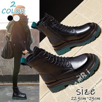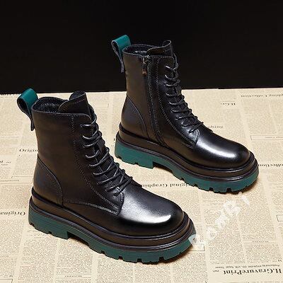 【メガ割 】ブーツ レディース 編み上げショートブーツ ローヒール レースアップシューズ ワークブーツ ブーティ