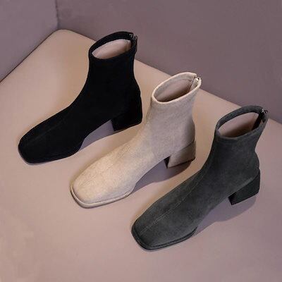 パンプス 靴 レディース ショットブーツ 厚底靴 ローヒール 厚底 ミドルブーツ 韓国ファッション ラウンドトゥ 韓国ファッション676