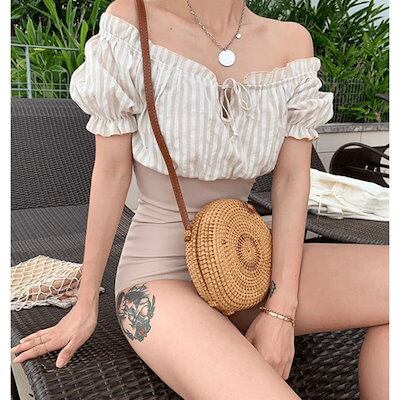 2024 春夏 露出を控えた ファッション 切り替え ビキニ スイムウェア付き タンキニセパレート スタイルアップ 海プール可愛い海水浴花 大人女子水着 レディース スリーブフレンチ1