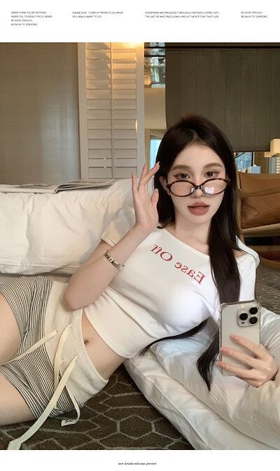 2024 春夏 甘い トップス Tシャツ ラウンドネック丈 休日 フレンチ プリント 韓国 ブラウス ファッション系 タイト スリムフィット丈短め半袖 ショートレディースへそ出し休日おしゃれT
