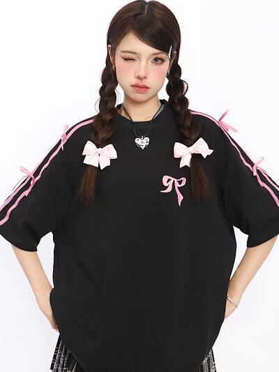 2024夏 韓国可愛い風トップス Tシャツ ファッション系 半袖 スリムフィット サイド ペイントシルエット ゆったり丈 ロングレディースサイズ韓国Vネックおしゃれカジュアルメンズライク T