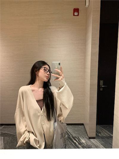2024 夏トップス カーディガン 長袖 ボタン Vネックゆったり 大きめサイズ 丈長め 細見え 夏 赤 レッド おしゃれ かわいい 韓国ファッション レディース お出かけ