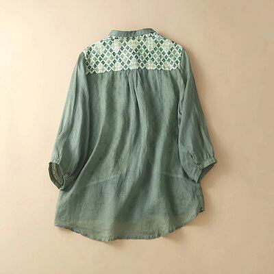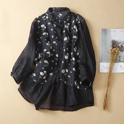UVカット特集レディース ブラウス長袖ブラウス日焼け防止体型カバーチュニッククルーネックトップスニュースタイル おしゃれ 流行り 薄手 Tシャツ 半袖 スリムフィット リネン素材トップスシンプル無地T