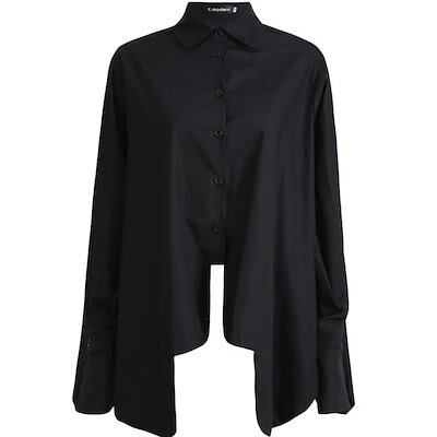 UVカット特集レディース ブラウス2023 新作 レディース 長袖 イレギュラーヘム ワイシャツ シャツ 着回し裾アシメ ブラウス モード系 長袖 コットン 通勤 OL フォーマル ブラック変形デザイ