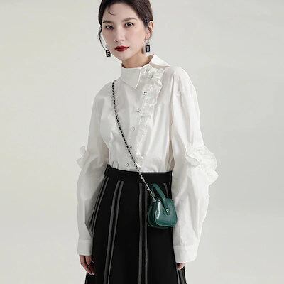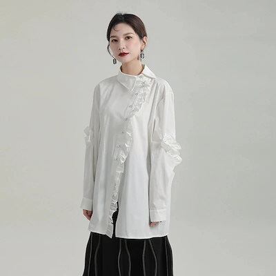 UVカット特集レディース ブラウス長袖ブラウス日焼け防止チュニック 初 新作 ラッフル 長袖 シャツ アシンメトリー セミロングシャツ でもブラウスシアーシャツ韓国ファッション日焼け防止シアーシャツ