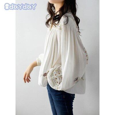 ブラウス レディース きれいめ 40代 秋新作 オシャレブラウス 白シャツ 長袖トップス パフスリーブ プリントブラウス ボヘミア風 大人 上品 ゆったり
