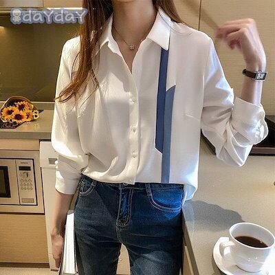 ブラウス レディース 40代 秋 新作 シフォンシャツブラウス 長袖トップス オフィス Vネックブラウス きれいめ 韓国風 大きいサイズシャツ 着痩せ 通勤 大人