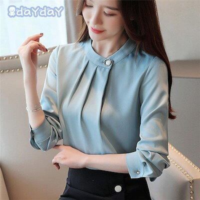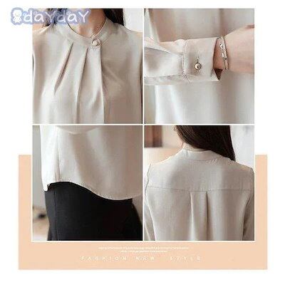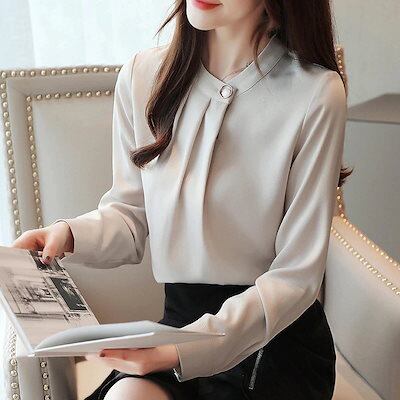 ブラウス レディース 春秋 新作 不規則 ネック ゆったり 長袖ブラウス トップス きれいめ シフォン 韓国風 おしゃれ カジュアル オフィス 通勤 OL 2色 コーデ