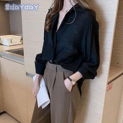 ブラウス レディース 春秋 長袖ブラウス Vネック シフォン おしゃれトップスシャツ シースルー オフィス ブラウス 着痩せ 大きいサイズ 通勤 OL 新作 3色