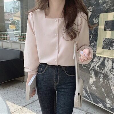 万能流行感 シャツ ブラウス 40代 レディース 春新作 長袖 スクエアネック 通勤 韓国風 トップス シフォン きれいめ 白 50代 30代 オシャレ 大人 ゆったり カジュアル