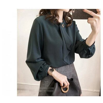 ブラウス レディース 春秋 おしゃれ 長袖 シフォン ブラウス 大きいサイズ 無地シャツ 韓国風 ブラウス トップス 通勤 着痩せ 新作 3色