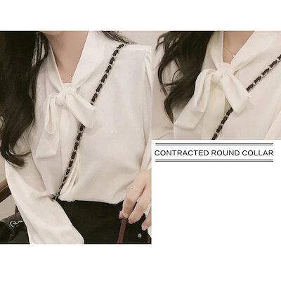 ブラウス レディース きれいめ 40代 春秋新作 オシャレブラウス 白シフォシャツ 長袖トップス リボンネックブラウス 大人 通勤 ゆったり シャツ30代 50代