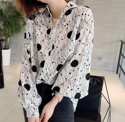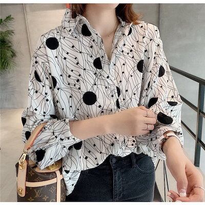 ブラウス レディース 40代 春秋 オシャレブラウス シフォシャツ 長袖トップス カジュアル韓国風 プリントシャツ おしゃれ 大人 通勤 ゆったり シャツ30代 新作