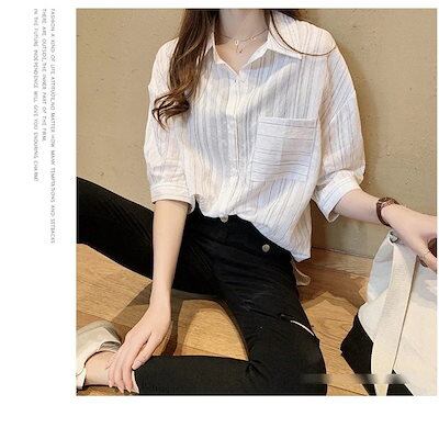 ブラウス レディース 40代 秋新作 長袖ブラウス ボーダー柄シャツ白 パフスリーブシャツ オシャレブラウス 通勤 上品 ゆったり 大人可愛い 30代 50代