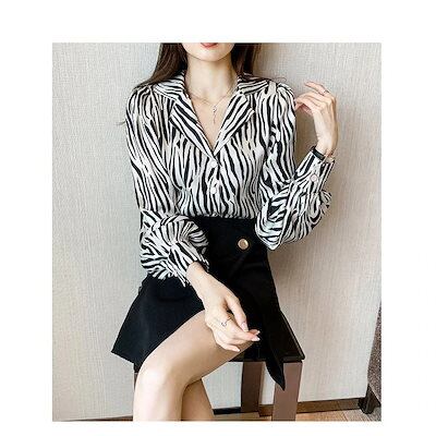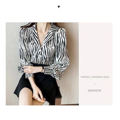 ブラウス レディース きれいめ 40代 春秋新作 長袖トップス オシャレブラウス パフスリーブシャツ ゼブラ柄 Vネック 上品 大人 通勤 ゆったり 30代 50代