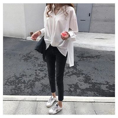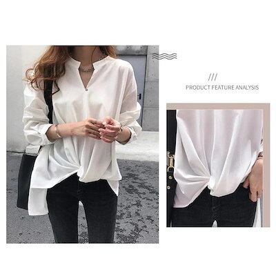 ブラウス レディース 春秋 トップス 無地 シャツ オフィス 長袖 Vネック オシャレ トップス ブラウス 韓国風 着痩せ 大きいサイズ 通勤 大人 新作 3色