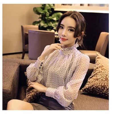 ブラウス レディース 春秋 きれいめ長袖 パフスリーブ ドット柄レース フリル袖 復古調 シフォンブラウス韓国chic シャツ Tシャツトップス 40代 着痩せ通勤 新作