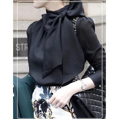 ブラウス レディース きれいめ 春 新作 オシャレブラウス リボンネック 長袖トップス ブラウス 大人 白シフォンシャツ 通勤 ゆったり シャツ30代 50代
