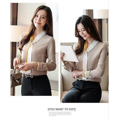 ブラウス レディース きれいめ春秋新作 長袖トップス 白オシャレブラウス シルク風シャツ リボンVネック 上品 大人 通勤 40代 ゆったり シャツ