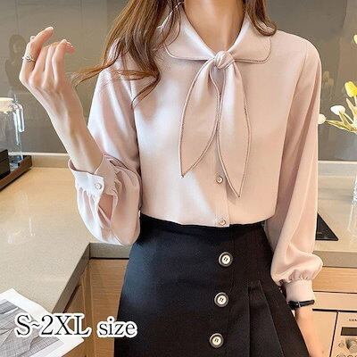新作 ブラウス シャツ 40代 レディース 春新作 長袖 リボン 通勤 韓国風 トップス シフォン オフィス きれいめ 白 50代 30代 オシャレ 大人 ゆったり カジュアル