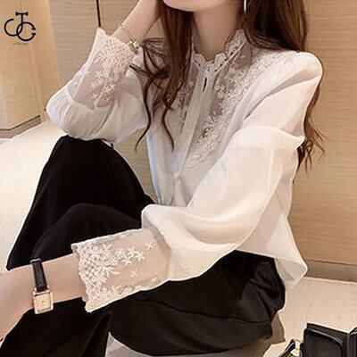 大人気 上品 シャツ ブラウス レディース 刺繍 レースブラウス トップス 長袖 シャツ 大人セレブ カットソー おしゃれ韓国ファッション 春秋新作