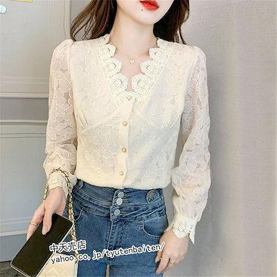 レースブラウス レディース きれいめ 春秋新作 オシャレブラウス長袖 レースブラウスVネック 大人 通勤 シャツ40代30代 50代入学式 卒業式 ブラウス 披露宴