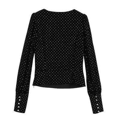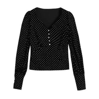 ブラウス レディース トップス きれいめ 秋 冬 新作 長袖 vネック オシャレ シャツブラウス ドット 上品 ゆったり 大きいサイズ 痩せ 大人 秋冬 通勤 OL