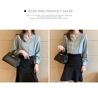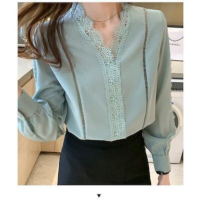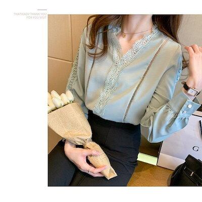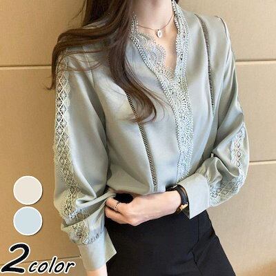 ブラウス レディース きれいめ 40代 春秋新作 オシャレ シャツブラウス 無地 シャツ 長袖 トップス レース vネック 大人 通勤 ゆったり 30代 50代