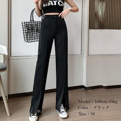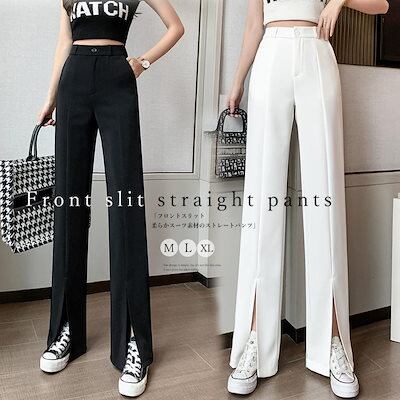 人気沸騰 大人気レディースパンツ フロントスリット ワイドパンツ オフィス