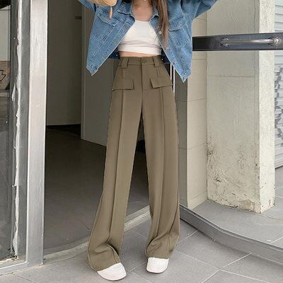 人気沸騰 大人気レディースパンツ ワイドパンツ ハイウエストスラックス脚長