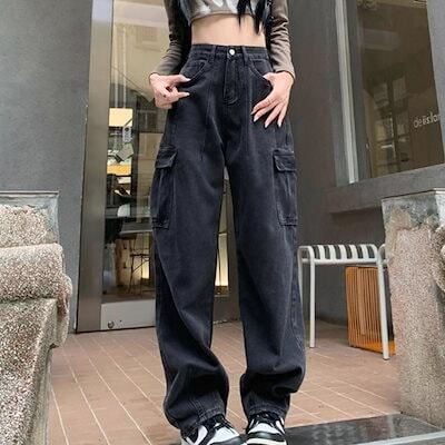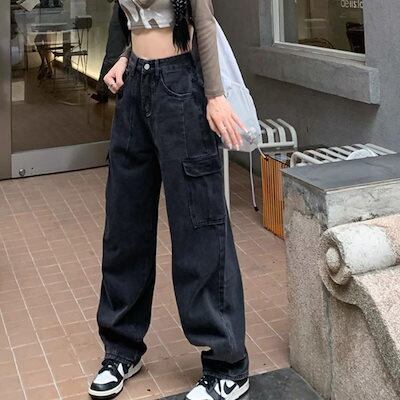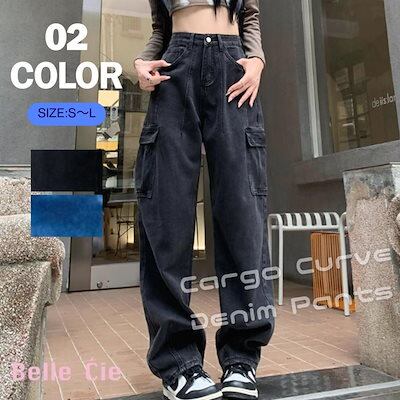 カーブパンツ レディース ワイド ジーンズ ストレート デニム カーゴパンツ デニムパンツ ハイウエスト ズボン 韓国ファッション ゆったり ルーズ
