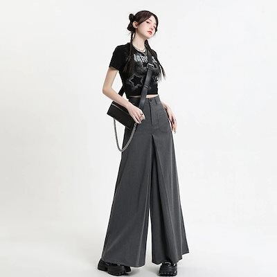 ワイドパンツ ロングズボン 長ズボン ハイウェストゆったり デザイン感 レディース服 ロングパンツ 背広のズボン 着痩せ レディース ワイドパンツ