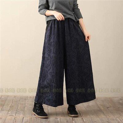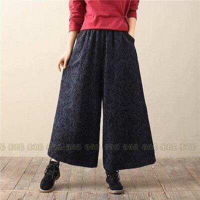 パンツ ワイドパンツ レディース ガウチョパンツ コーデュロイパンツ ウエストゴム 秋 冬 ボトムス 花柄 ワイド ロングパンツ おでかけ 体型カバー 通勤 OL おしゃれ