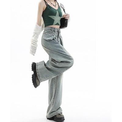 新追加 2025 新作春 脚長効果! デニムパンツ レディース デニム ワイドパンツ レディース 着やせ